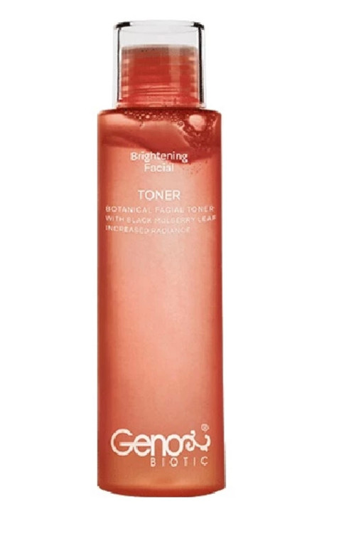 تونر روشن کننده صورت ژنوبایوتیک علاوه بر پاکسازی نهایی پوست از ذرات باقی مانده مواد آرایشی موجب روشن شدن پوست نیز میشود. علاوه بر آن خاصیت ضد التهاب و رفع قرمزی پوست نیز دارد.