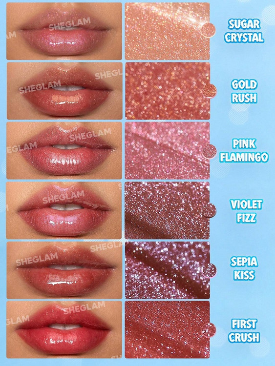 Pout-Perfect Shimmer Lip Plumper در چندین رنگ مختلف عرضه میشود که هر کدام از آنها دارای نامهای جذابی مانند “Sugar Crystal”، “Sepia Kiss”، “Pink Flamingo”، “First Crush”، “Violet Fizz” و “Gold Rush” هستند. این تنوع رنگی به مصرفکنندگان این امکان را میدهد که رنگ مورد علاقه خود را انتخاب کنند و با استایلهای مختلف هماهنگ کنند.