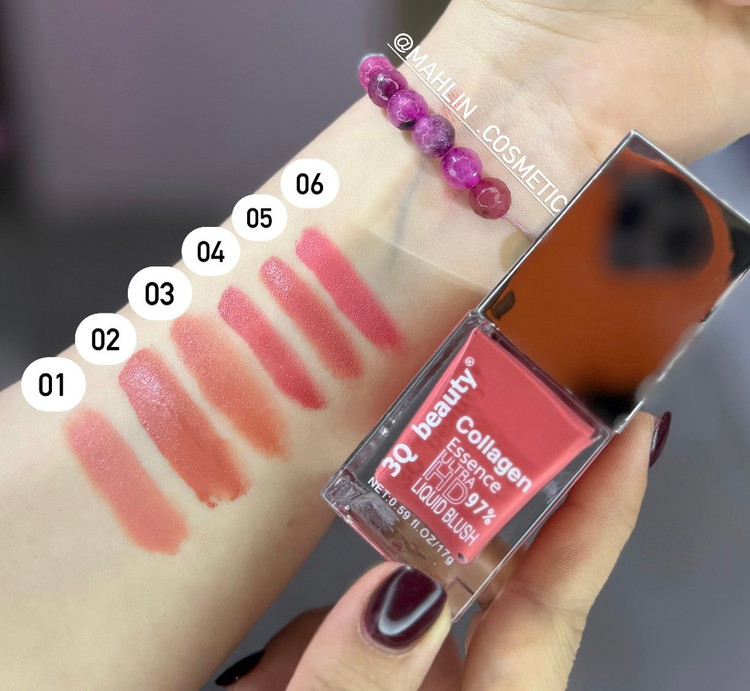 رژگونه مایع 3Q Beauty در 6 رنگ جذاب و کاربردی طراحی و به بازار عرضه شده است.این رژگونه دارای فرمولاسیون مایع و بافتی سبک و نرم می باشد که به هنگام استفاده ظاهری لوکس و شیک را ایجاد میکند .