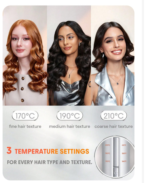 دارای سه دما: 170، 190، 210 دارای چرخش: 360 درجهای سیم دارای سیستم آزاد کننده یون منفی دارای سیستم خاموشی خودکار جهت امنیت بیشتر قطر: 25 میلی متر دارای ۳۲ وات توان مصرفی دارای پوشش سرامیکی GlossPro حالت دهنده سریع و آسان مو سرعت بالای فر کردن مو بدون ایجاد کشیدگی و گره خودگی موها بدون آسیب دیدگی و سوختگی مو حفظ رطوبت و افزایش درخشندگی مو جلوگیری از وز و موخوره بدون نیاز به مهارت و مناسب افراد مبتدی تحویل این محصول ۱ هفته کاری میباشد