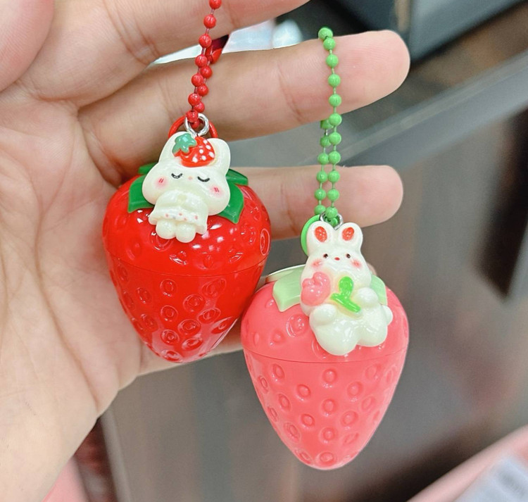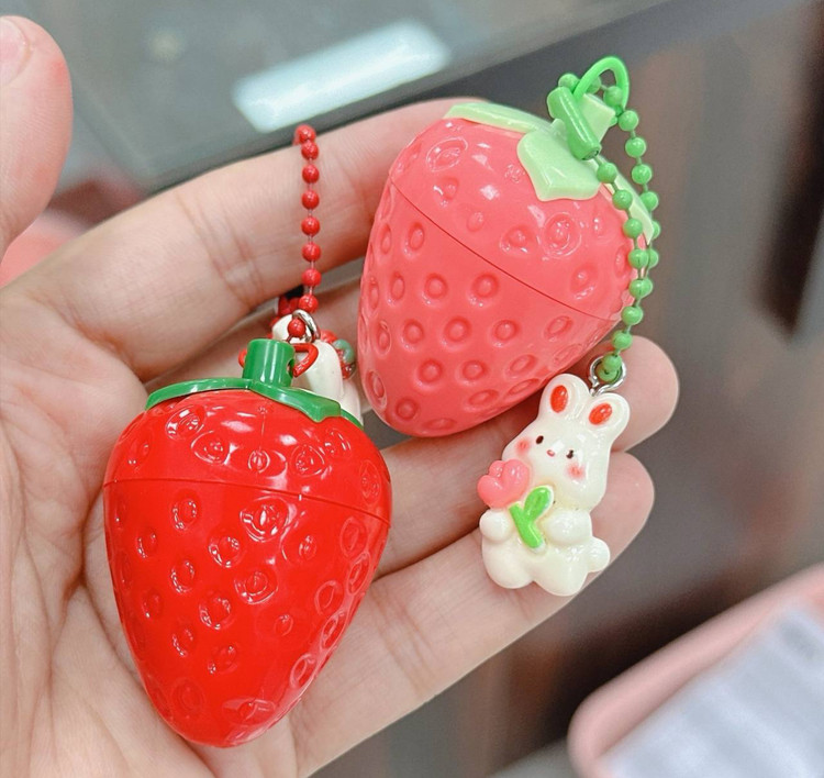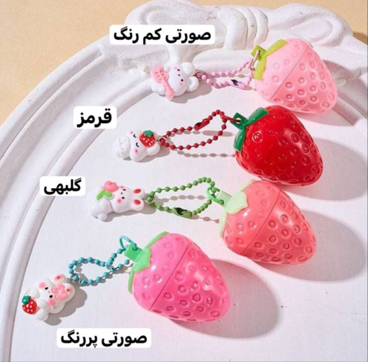 - طراحی فانتزی و بانمک: به شکل توتفرنگی با آویز خرگوشی بامزه، مناسب هدیه و استفاده روزانه.