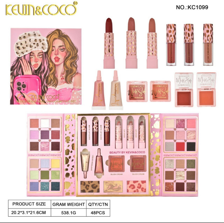 شامل رژلب جامد و مایع،کانتور،هایلایترمایع و پودری،رژگونه و ۴ پالت سایه ۹ عددی