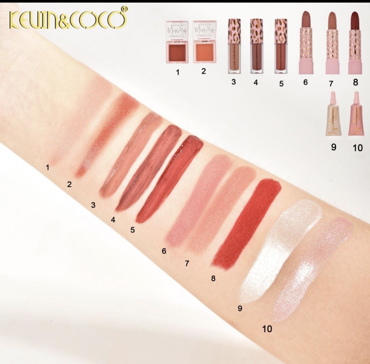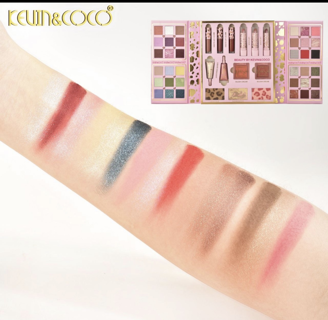 شامل رژلب جامد و مایع،کانتور،هایلایترمایع و پودری،رژگونه و ۴ پالت سایه ۹ عددی